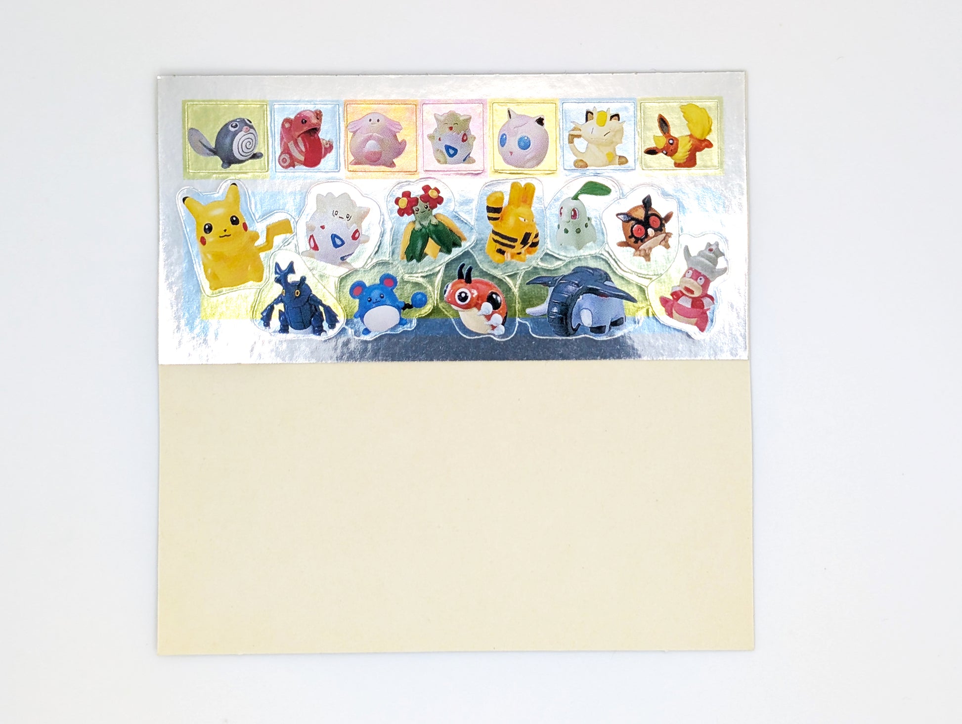 Starting in 1999, Shogakukan would publish the "Pikachu no Daibouken" series, these books would feature artwork of elaborate dioramas which included a large number of Tomy Pokemon capsule figures. This book comes from their postcard set, which feature a number of postcards with artwork from the books, as well as a sticker sheet.